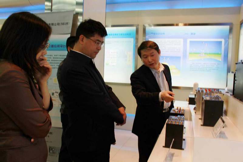 閆忠文總裁在王海濤總經理的陪同下參觀航天恒星(北京)展廳