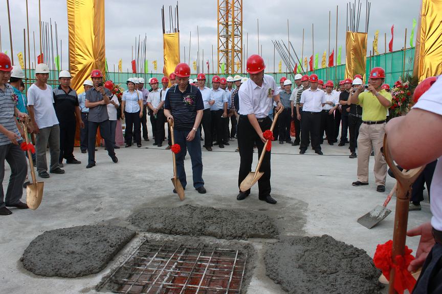 出席儀式活動(dòng)的各位領(lǐng)導(dǎo)共同為衛(wèi)星大廈封頂添加混凝土,衛(wèi)星大廈封頂儀式獲得圓滿成功。